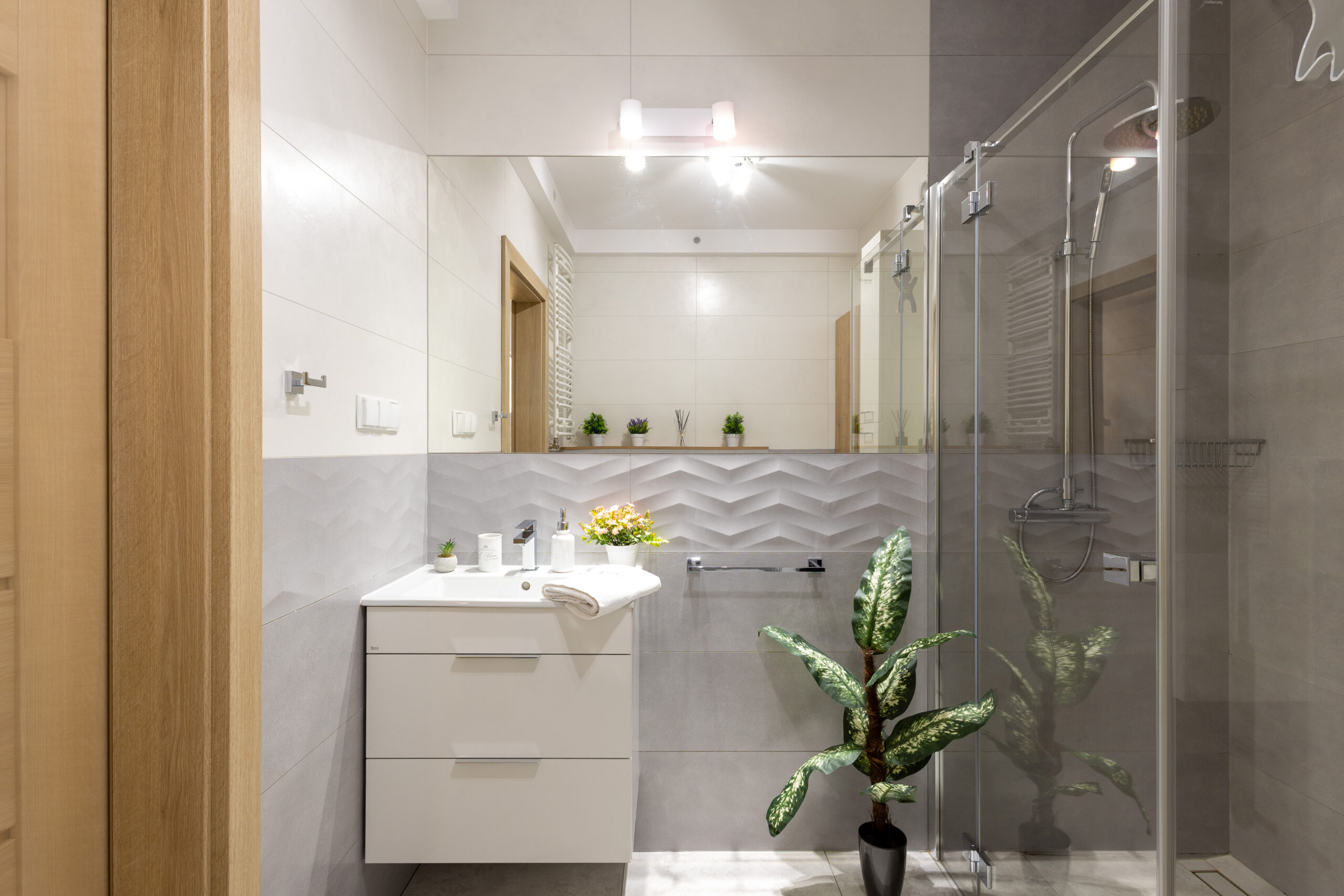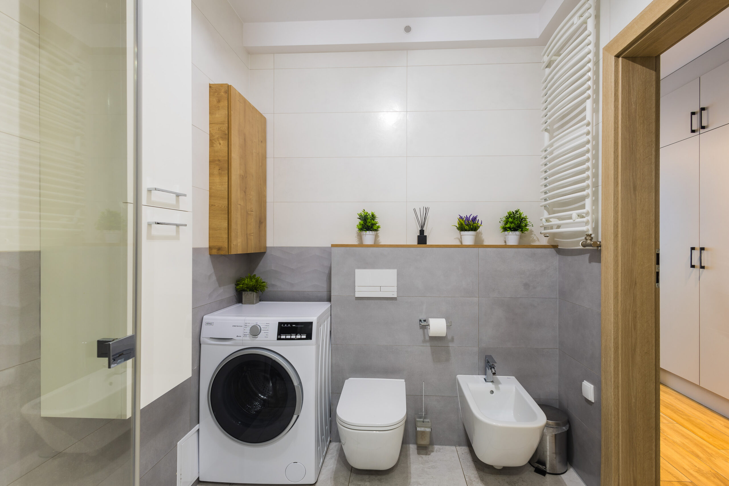- Łazienka – z prysznicem, wc, bidetem, umywalką, dużym lustrem, pralką i ręcznikami