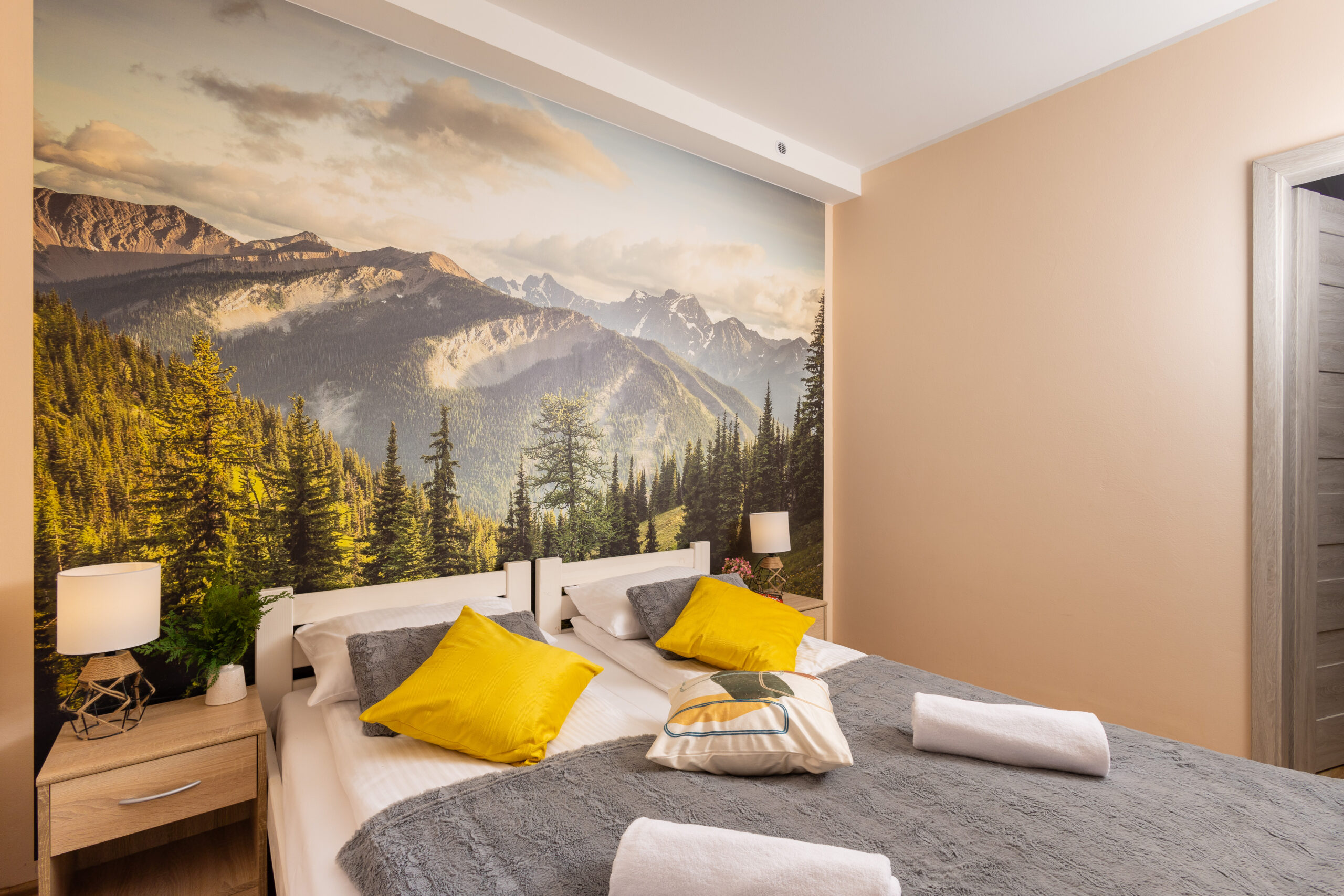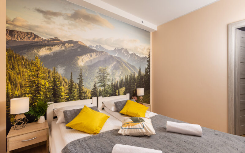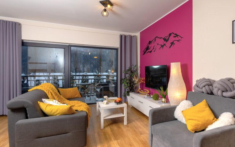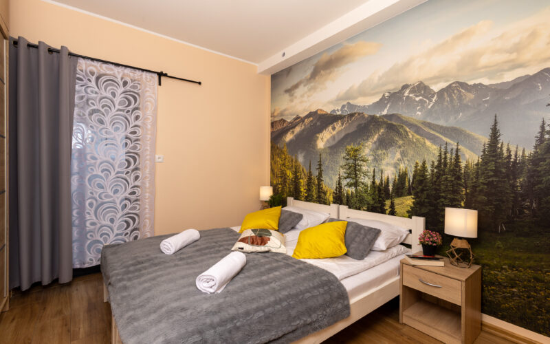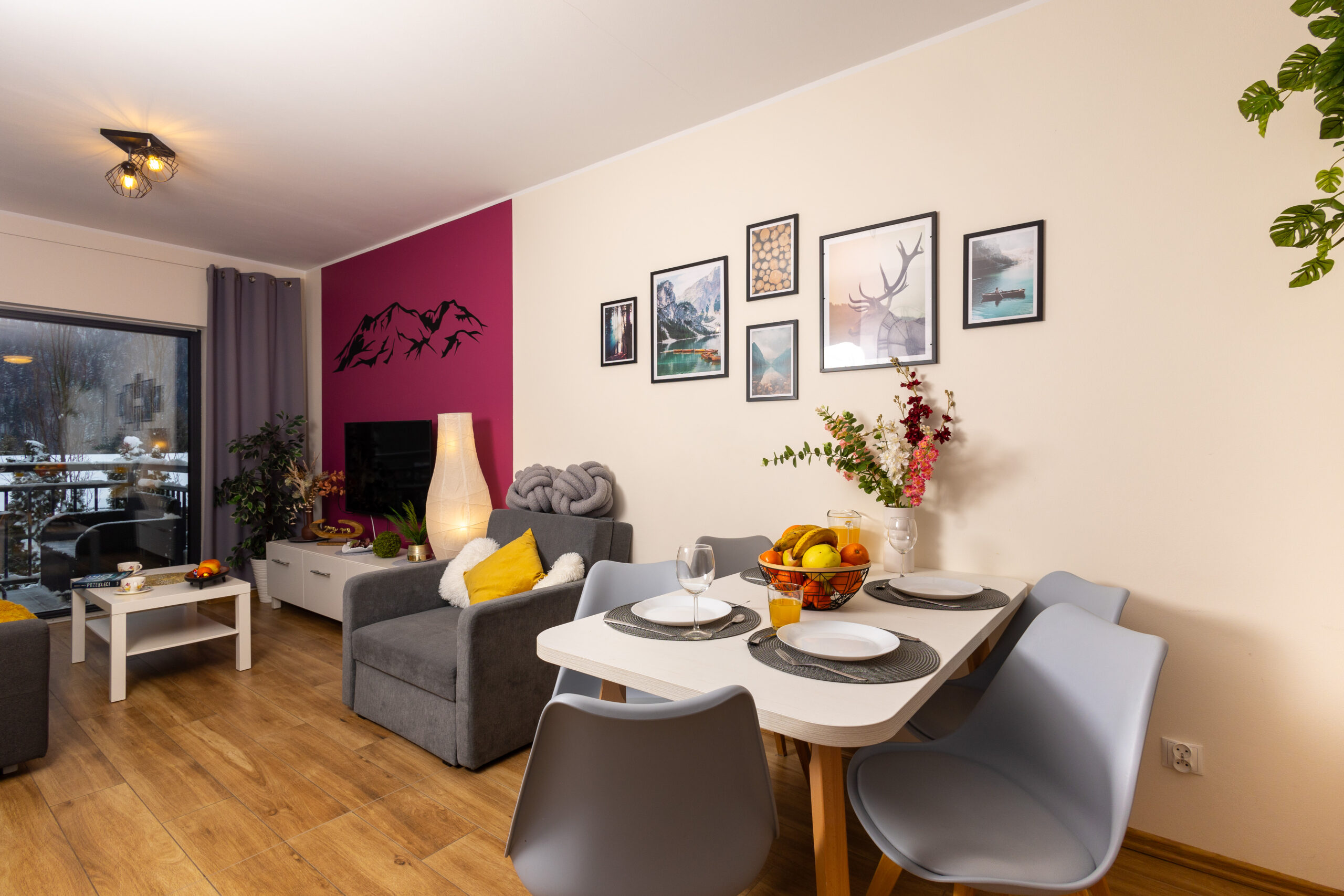 Ski & Fun 6 to urzekający apartament o powierzchni 44 m2, oferujący komfortowe zakwaterowanie dla 5 osób. Położony na parterze nowoczesnego budynku, apartament zachwyca nie tylko swoim unikalnym designem, ale także wygodą dostępu dzięki prywatnemu wejściu otwieranemu za pomocą klawiatury z kodem.